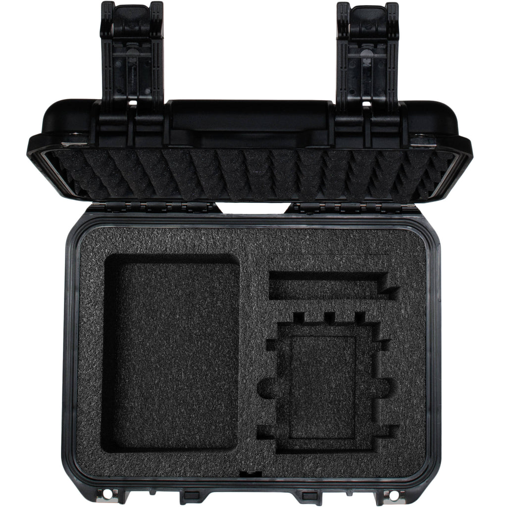 Its custom-cut foam interior is shaped to fit one transmitter, two receivers, miscellaneous cables, and small mounting gear. Other features include a trigger-release latch system, a snap-down rubber overmolded cushion grip handle, and resistance to UV, solvents, corrosion, fungus, and impact damage.
