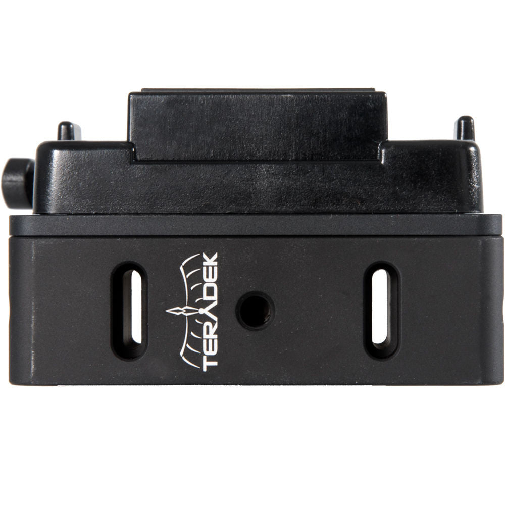 This Single Mount Battery Plate from Teradek allows you to power your Bolt Pro 300, 500, 600, 1000, 2000, or 3000 receiver using a V-mount 14.4V battery. It offers one D-Tap accessory output (50W maximum) on the side and includes an 11" long D-Tap to 2-pin connector cable. This plate can be used with the Teradek Antenna Array or as a standalone bracket as there are three 1/4"-20 mounting points as well as two 1/4"-20 pass-through slots.