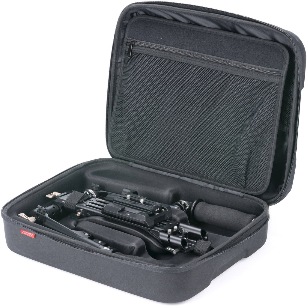 This is the first rig I have purchased, but not the first I have used. Cons: The front rolling lock is not always tight enough. The cushions are not comfortable. You could build one for much cheaper and get almost the same results. Total price after accessories (not a monitor or camera) was ~1200. I had to buy a lot of little pieces which added up. Pros: the case has extra pockets. They do have a lot of gadgets for a base build. The base expands, but the camera stays on the front portion. The handles telescope and turn to most positions that anyone would want. 15mm rod holders on the back and 1/4 20 screw spots on the arms. Overall I am not upset about it since there were no reviews before, but I would have gone a different route. It is too much hassle to deal with 15+ returns for this one setup