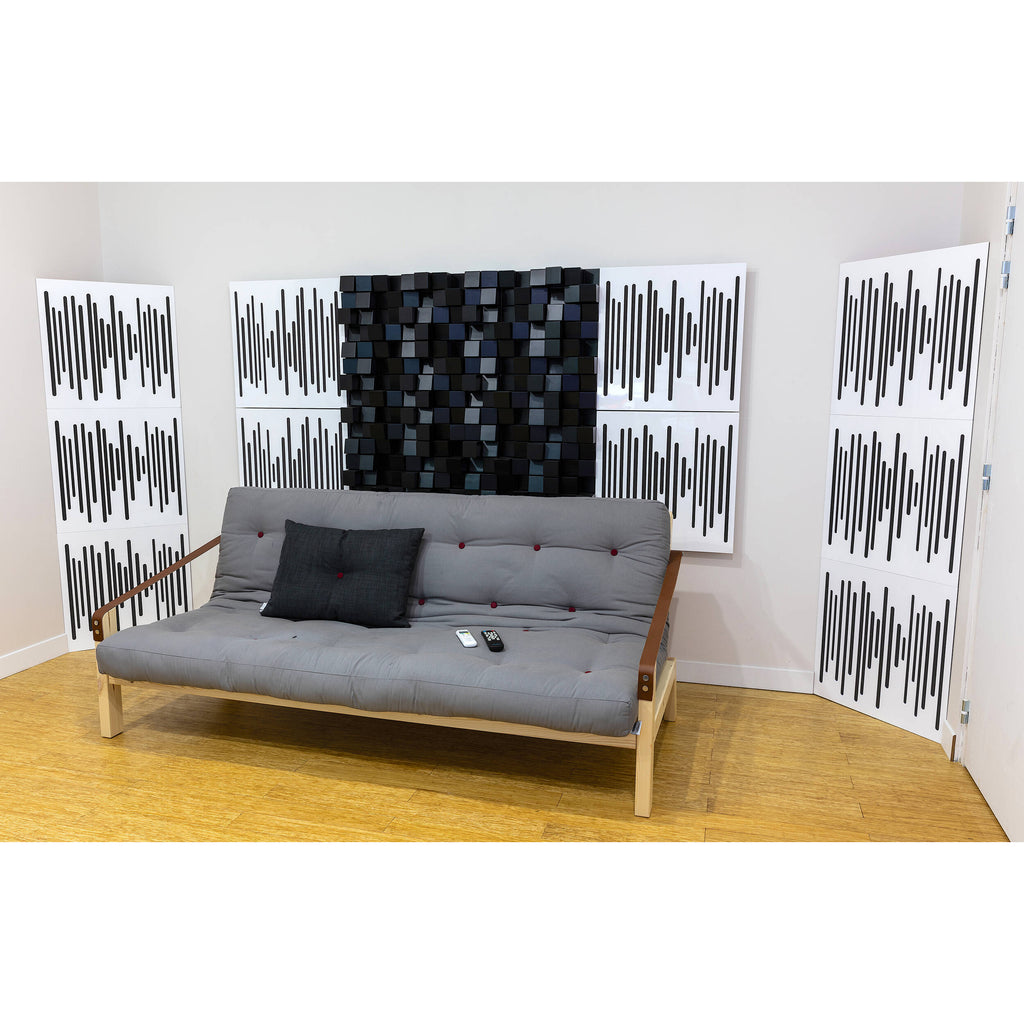 Made from solid wood, the natural wood 2-piece Vicoustic Multifuser Wood 36 MKII Acoustic Panel is perfect for use in venues such as concert halls, hi-fi rooms, and recording studios, where effective diffusion is often required, without too much absorption occurring at the same time. With its striking angled surface, the two-dimensional diffuser is based on a QRD sequence combined with changing reflection techniques (a result of the angled surface). Made of two parts, each part can be rotated in different directions so that a uniform omnidirectional scattering of sound is achieved, with particularly effective diffusion of mid and low frequencies. Multifuser Wood 36 works between 470 Hz and 10 kHz. As well as its acoustic efficiency, the panel's attractive appearance makes it suitable for use in a range of settings.