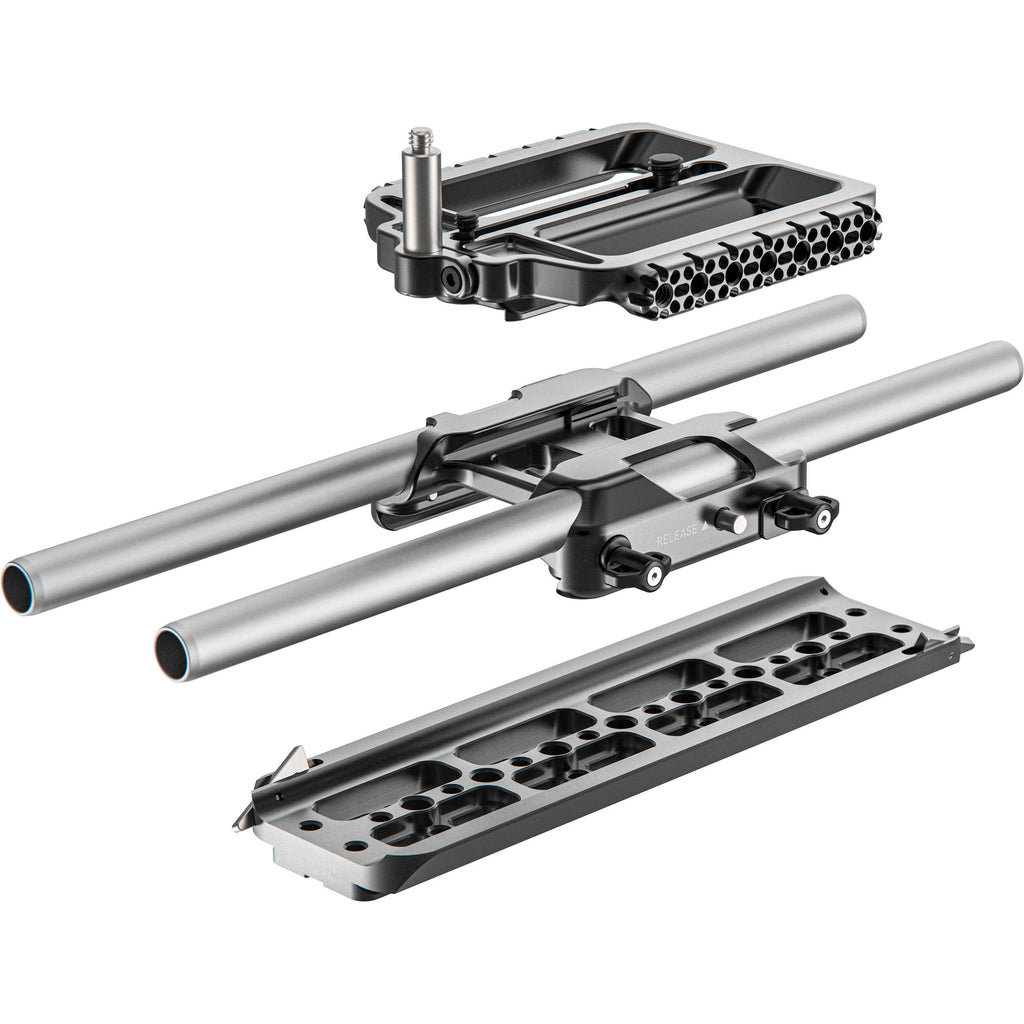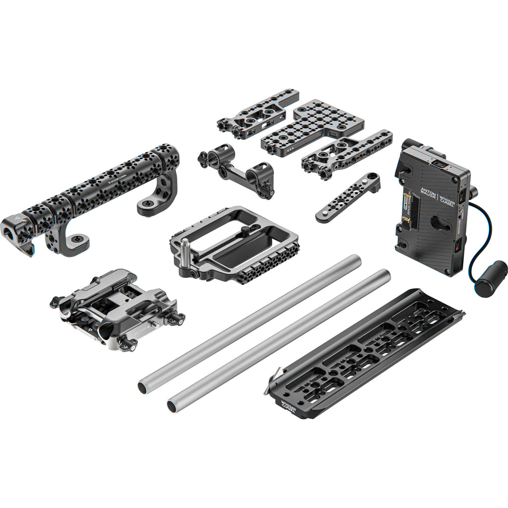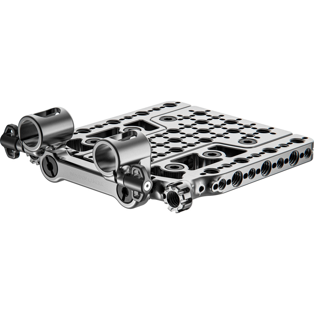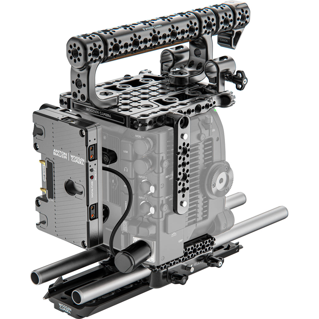 Add all the accessories you need to your Canon EOS C400 cinema camera with this Elite Accessory System from Wooden Camera. The modular system includes an Arca-type baseplate with an Arca-type riser system, a top plate system with two left/right plates and a center plate, an Ultra Handle 5" standard kit, a bolt-on EVF adapter for the Ultra Handle, a NATO side rail, an 8" safety dovetail plate, two 12" long 15mm rods, and a pro Gold mount battery slide.