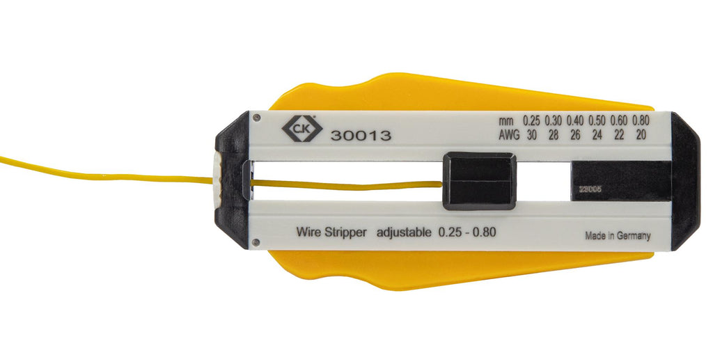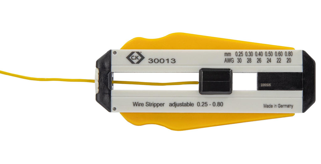 Precision wire stripper for 0.25 to 0.8mm diameter wire.