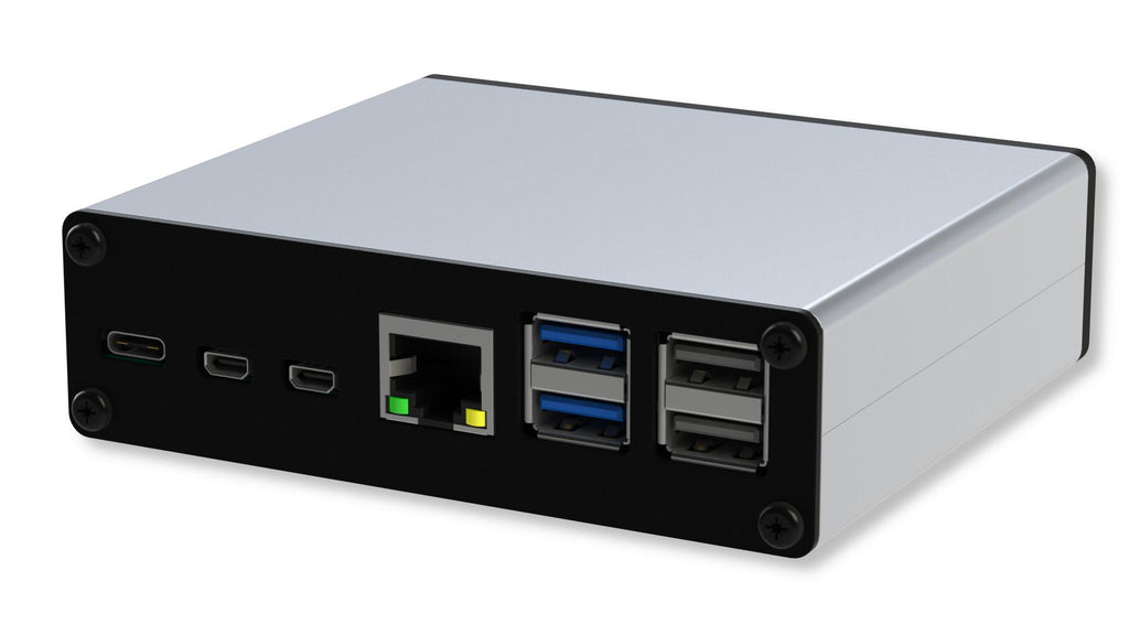 MP013553 is a Pi-Box Pro 5+ is a rugged industrial enclosure kit for the Raspberry Pi5+. By utilizing our Micro HDMI Pi5 extender board we can turn the power and Micro HDMI connectors through 90° so they are on the same plane as the Ethernet and USB connectors. The rear panel is made from 3mm acrylic and allows communication via Bluetooth and Wi-Fi signals from the Pi5/5+. The standard version allows access to the SD Card from the assembled enclosure. Pi-Box Pro 5+ has the same internal kit as the Pi-Box Pro 5 but is housed in the Combi Case extrusion. Ideal for those who wish to have a rugged aluminum case but not an industrial look.