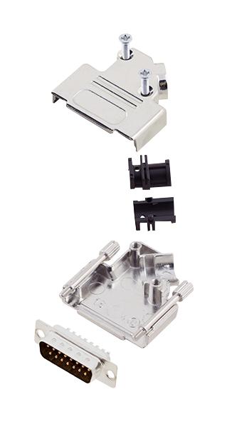 Amphenol ICC (COMMERCIAL PRODUCTS) L17D45ZK15+L717SDA15P D Sub Connector W/ Backshell 15 Contacts Plug Solder DA D45ZK Series Steel Body