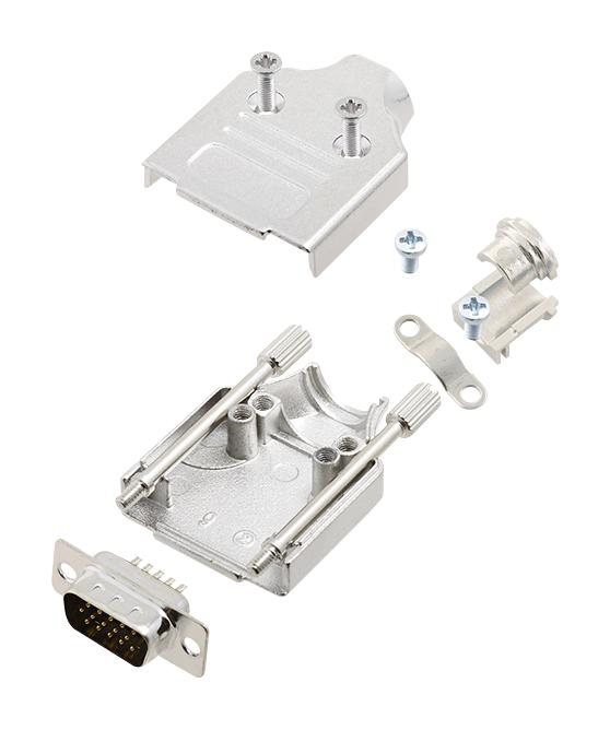 Amphenol ICC (COMMERCIAL PRODUCTS) L17MHDM09+L717HDE15P D Sub Connector HD W/ Backshell 15 Contacts Plug Solder DE Mhdm Series Steel Body