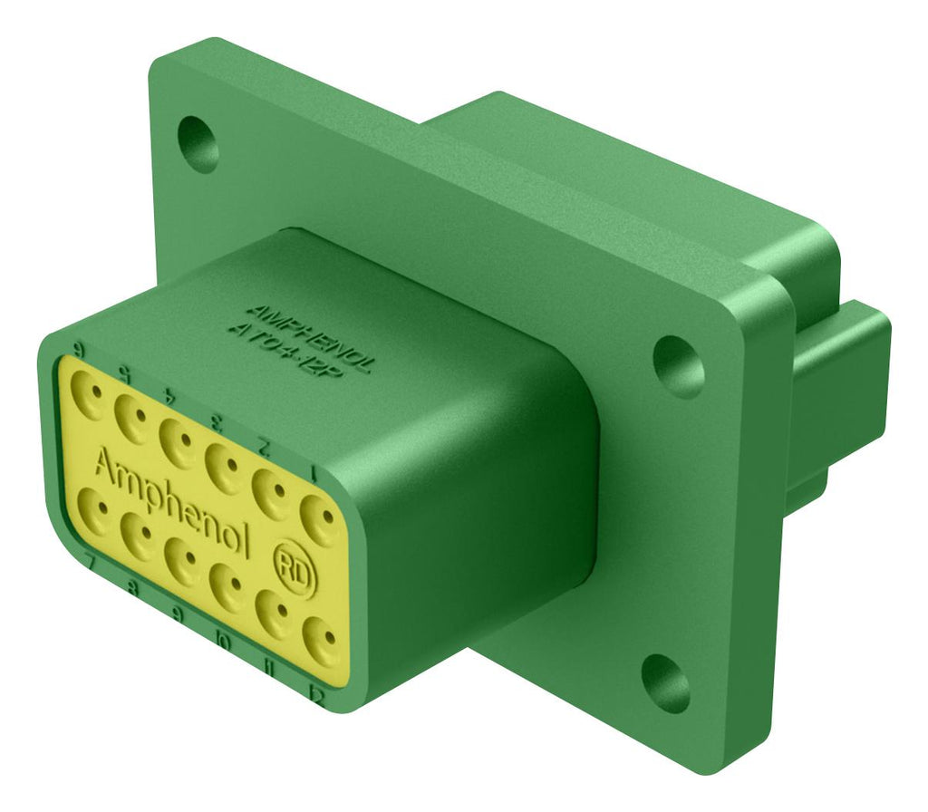 This is a 12 POSITION RECEPTACLE FLANGE MOUNT CONNECTOR, PIN, GREEN, KEYED C, REDUCED DIAMETER SEAL 98AC8310 product from AMPHENOL SINE/TUCHEL with the model number AT04-12PC-CL03