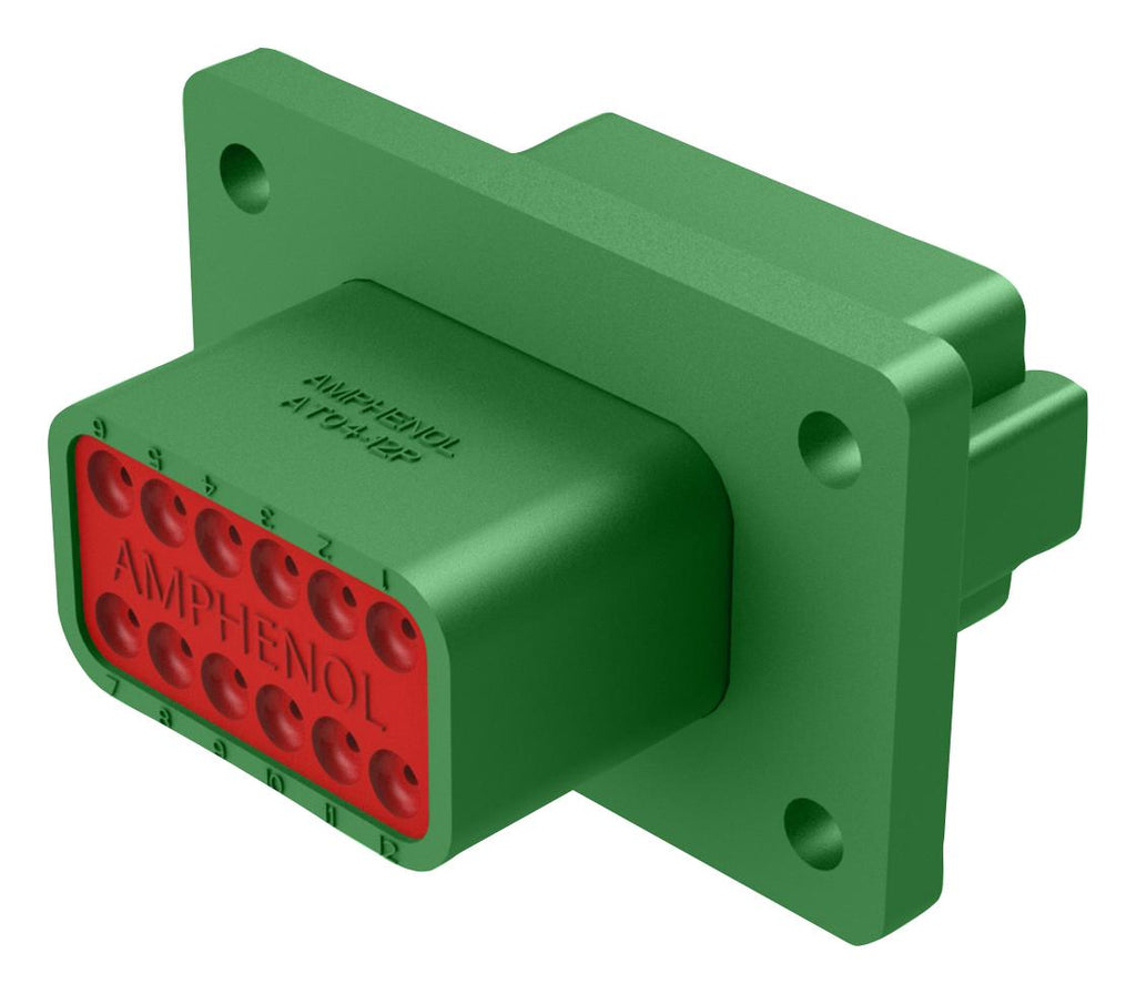 This is a 12 POSITION RECEPTACLE FLANGE MOUNT CONNECTOR, PIN, GREEN, KEYED C 98AC8312 product from AMPHENOL SINE/TUCHEL with the model number AT04-12PC-L012