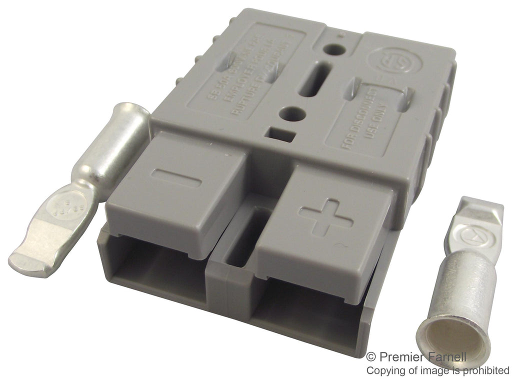 The 6319 is a 2-contact 1-row SB® 50 Connector, 2-pole housing and 50A contact with 600V continuous AC or DC operation. The innovative SB® 50 connector provides reliability, design flexibility and safety for products' manufacture, installation and maintenance. APP's 2-pole connector is available with a 50A rating, 600V continuous AC or DC operation. This SB® connector for many applications and wire sizes, #6 to #16AWG (13.3 to 1.3mm²). Mechanical keys ensure connectors will only mate with connectors of the same colour. Different colour housings are selected to identify voltages, thus preventing mismatching of the power supply system. Mechanical keyed housing, prevents accidental mating of components operating at different voltage levels. Provides industrial quality and durability. Makes assembly quick and easy and reduces number of parts stocked.