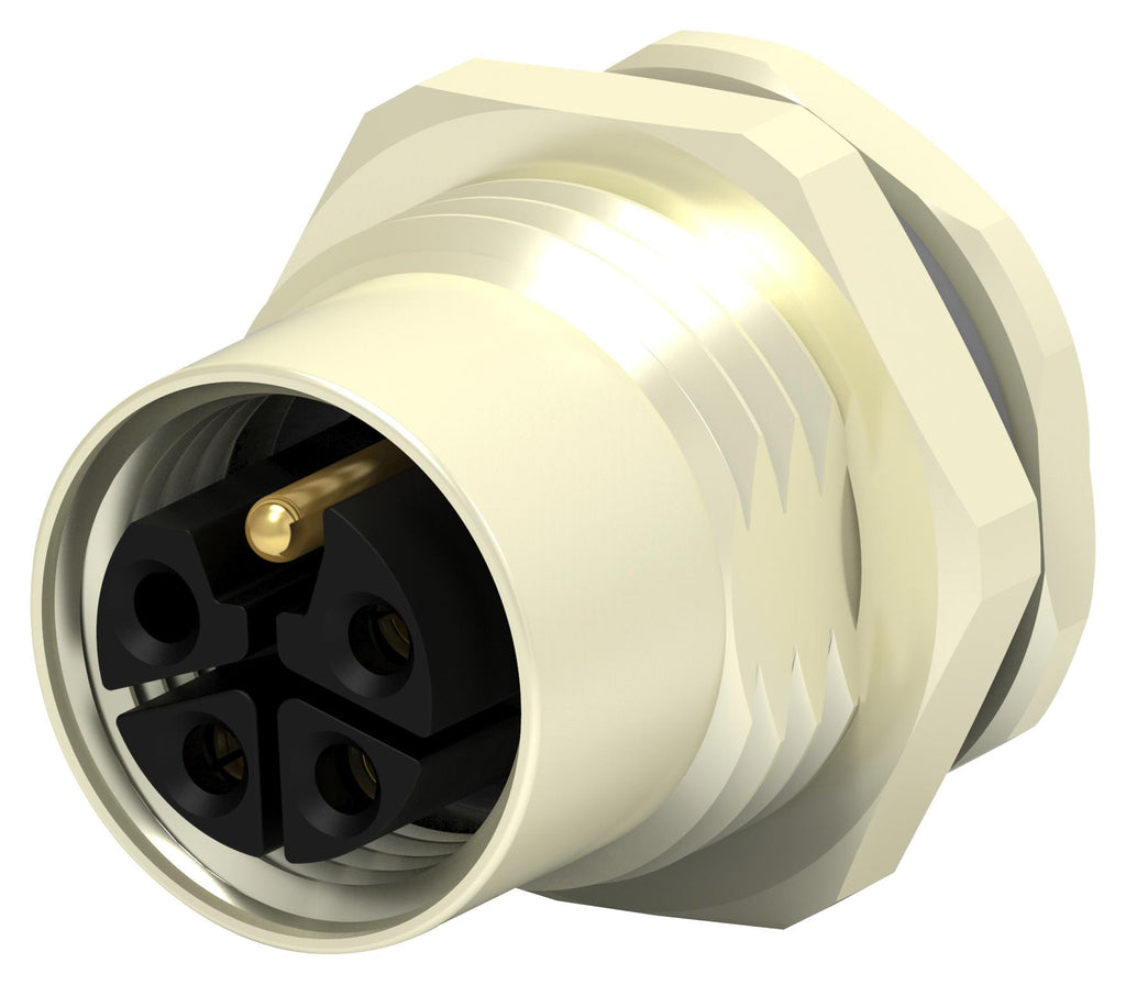 This is a M12,REAR MOUNT,FEMALE,L,3P+PE,SOLDER PCB 94AC8535 product from TE CONNECTIVITY with the model number T4141L12041-000