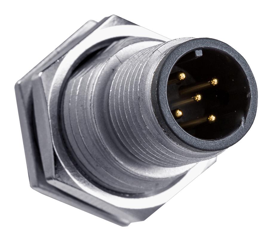 HDM12A-05PMMP-SF8001 is a HDM12, robust M12 high-temperature, 5 pin receptacle connector. Engineered for commercial applications with elevated vibration and challenging environmental conditions, the HDM12 excels in heavy-duty and harsh surroundings. Compliant with IEC 61076-2-101 and SAE J2839 standards, the HDM12 connector emerges as the ideal solution for ultra rugged applications prevalent in markets such as heavy equipment, heavy-duty automotive, railway mass transit, factory automation, and more. Elevate your connectivity reliability in extreme conditions with the durability and performance offered by our HDM12 connectors.