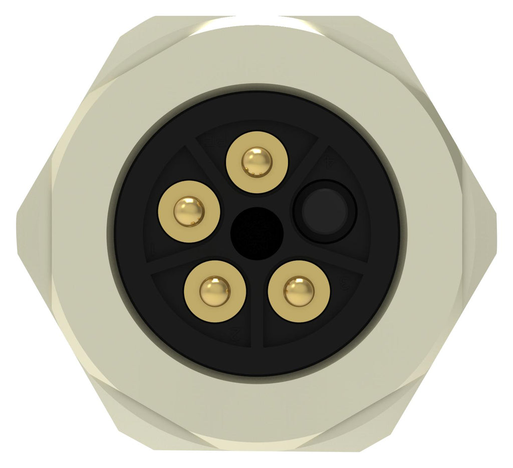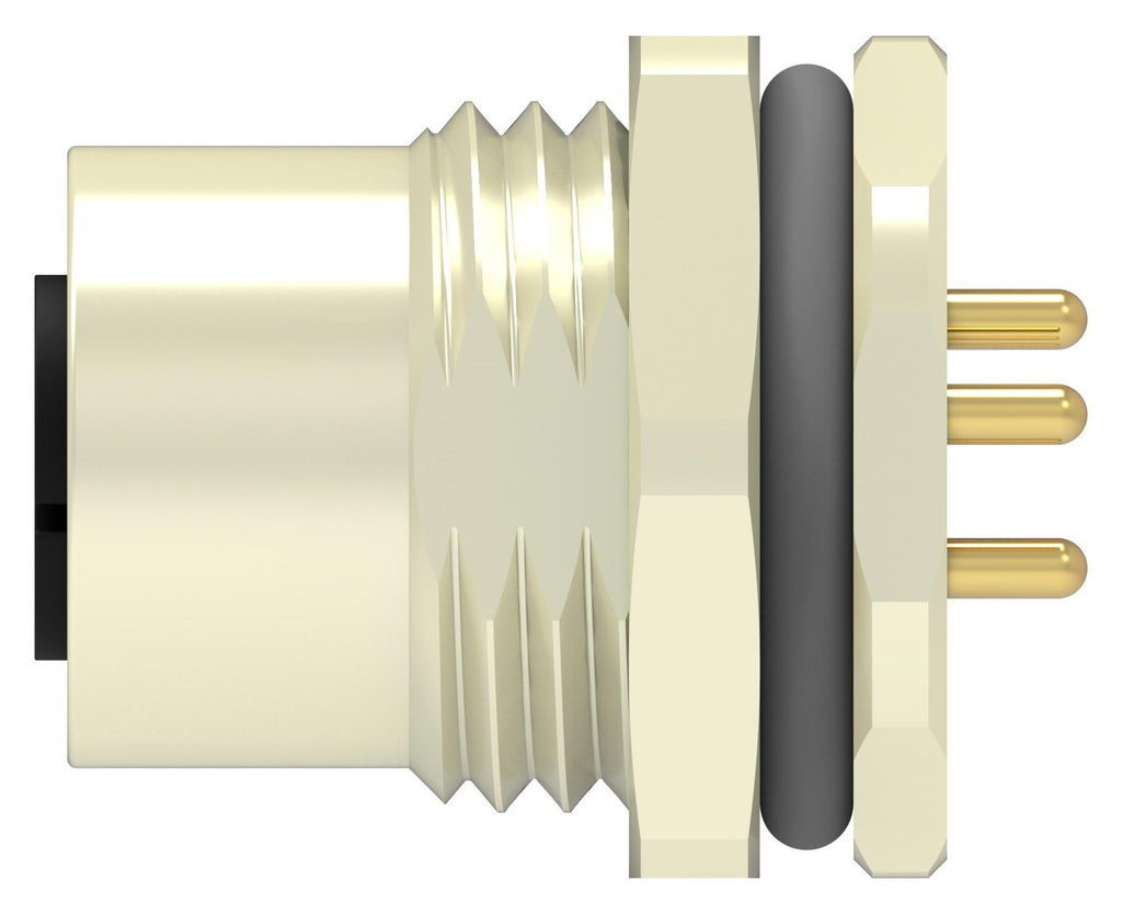This is a T4141L12041-000 Sensor Connector , M12, 3P + PE Positions, PCB Socket, Straight Panel Mount New product from TE CONNECTIVITY with the model number T4141L12041-000