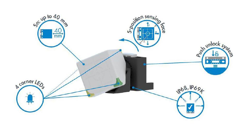 - Safer installation thanks to the long sensing range up to 40mm