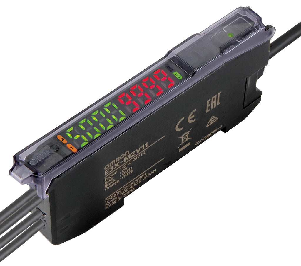 E3X-MZV41 2M is a MZV series, smart fibre amplifier. The minimum detectable object 3?m and response time 50?s in super-high-speed mode. It is equipped with smart tuning, which adjustment of light intensity and threshold level to their optimal value is possible by just pressing the button twice. Low price is achieved by carefully selected functions and performance to those required to detect presence or absence.