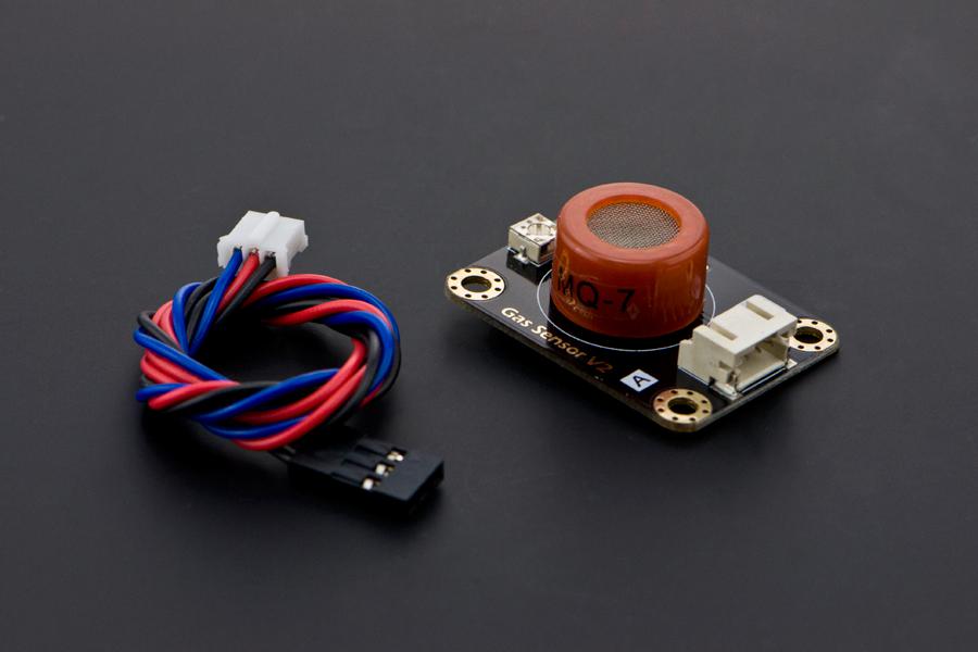 Gravity analogue Carbon Monoxide Sensor (MQ7) For Arduino It uses MQ7 probe to detect Carbon Monoxide (CO) concentrations in the air from 20 to 2000ppm. The sensitivity can be adjusted by the potentiometer. The output is proportional to the density of gas. You can use analogue reading to read the data from this sensor. To ease the difficulty of using this sensor, a Gravity Interface is adapted to allow plug&play. The Arduino IO expansion shield is the best match for this senor connecting to your Arduino microcontroller.