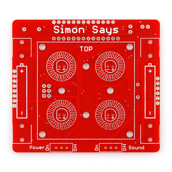 This is the latest version of our popular through-hole Simon Says Kit. We’ve made some changes to the board that should make it easier than ever for the beginner to build! All components are through-hole, making this kit a great place to start when you’re learning to solder. When building this kit, you’ll have a chance to solder a 28-pin microprocessor, LEDs, battery clips and more.