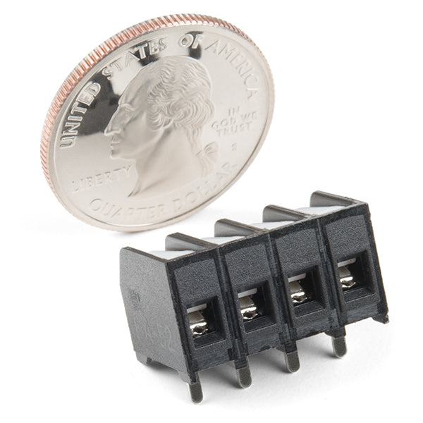 You'll have no need for a screwdriver with this terminal! This is a 4-pin Latch Terminal with 5mm pitch pins. Each pin is rated up to 250V @ 11A and will line up well with the standard 0.19" spacing. Please note that the pins are thick enough (1.20mm OD) that you may need to increase the hole diameter on some boards. Each of the terminals can accept 18-22AWG wire.