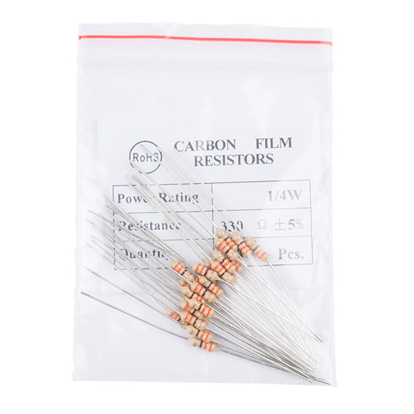 SparkFun Resistor 330 Ohm 1/4 Watt PTH - 20 pack (Thick Leads)