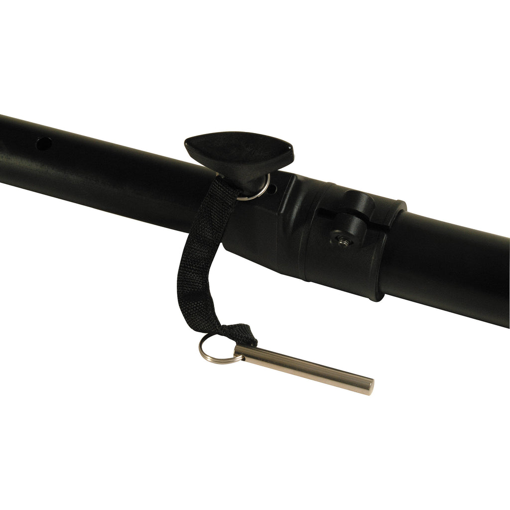 The black Subwoofer Pole with M20 Thread from On-Stage is designed for pole mount subwoofers and features all-steel shafts that telescope from 30 to 54� (76.2 to 137.16cm). These shafts are held tight with a friction locking knob backed up by a captive steel security pin to help avoid tilt and wobble. The lower shaft features 1.61� (41.00mm) diameter steel tubing terminated with a zinc plated threaded lug. The upper shaft is sized to fit satellite speakers with standard 1 3/8" pole mounts.