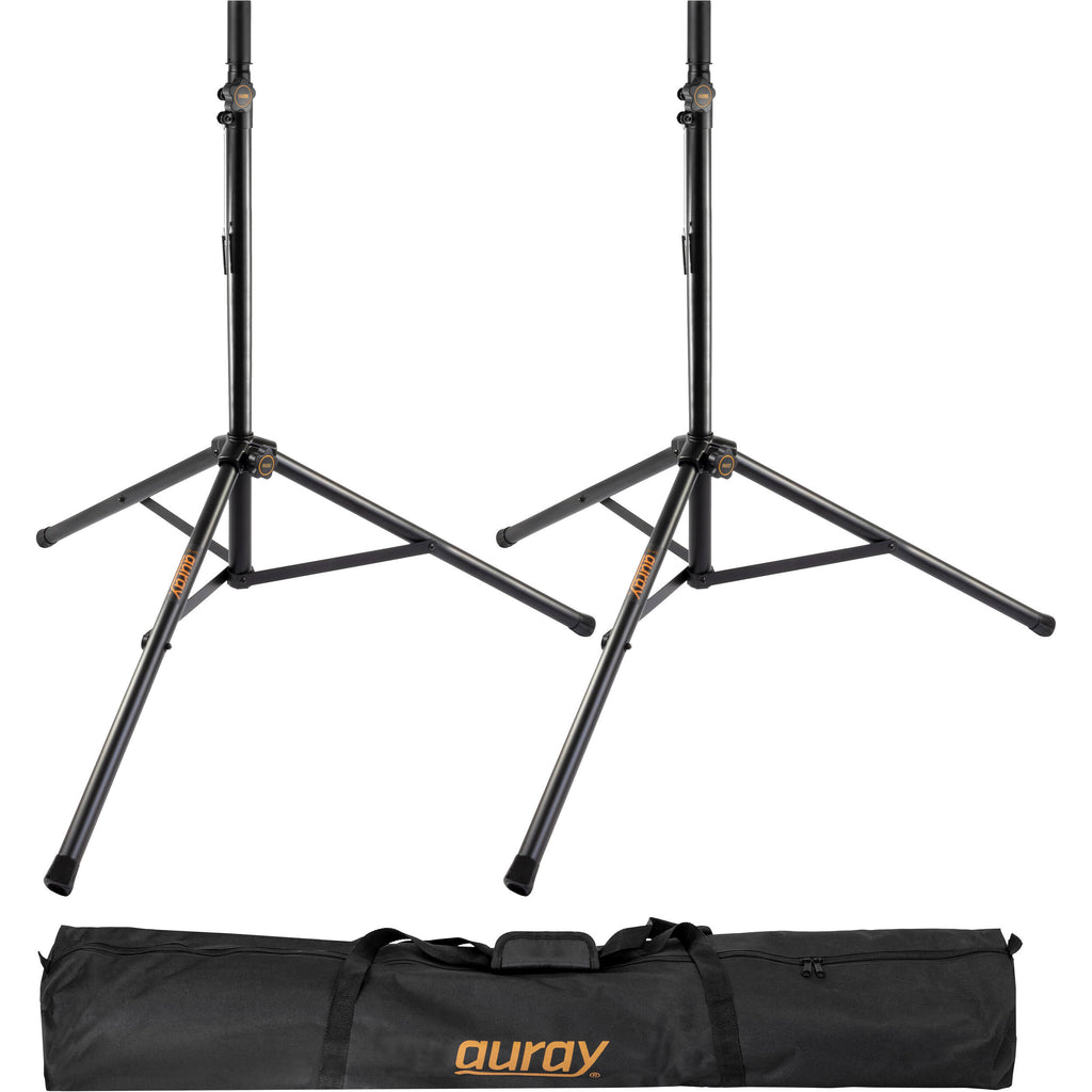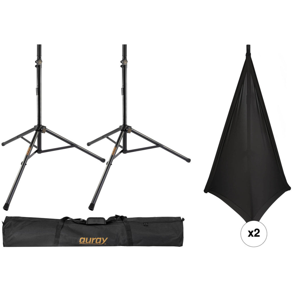 Auray Deluxe PA Speaker Kit with Two Speaker Stands, Two Stand Skirts & Bag (Black)