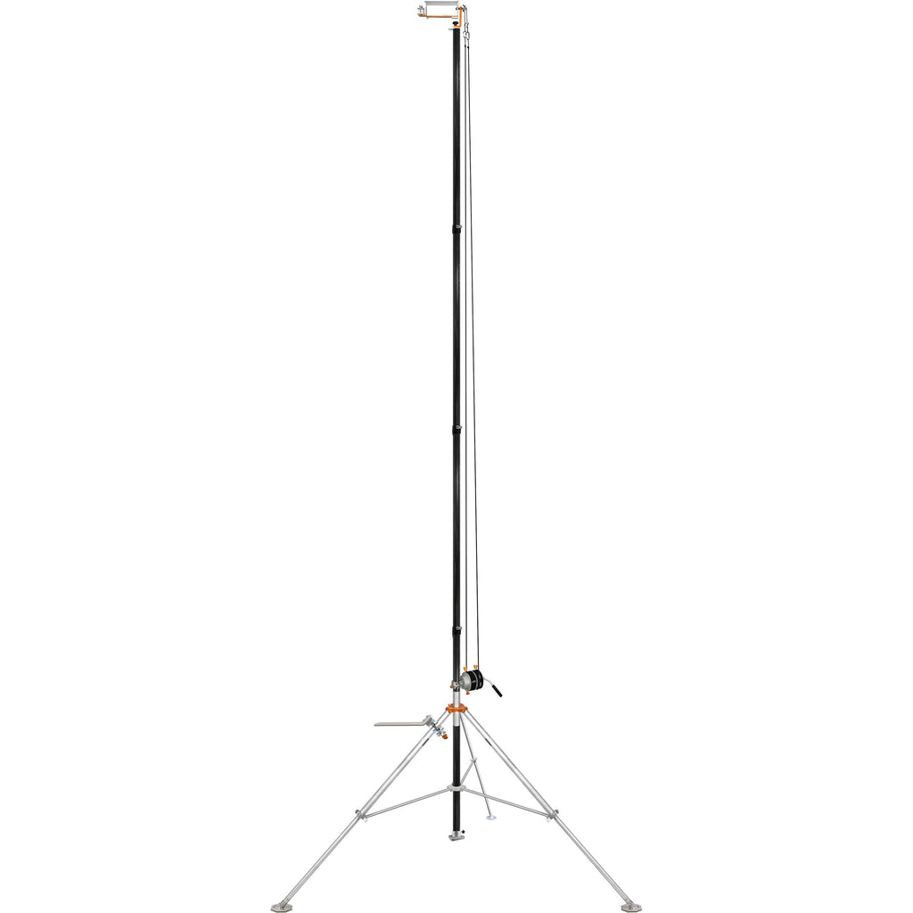 The Air 21NE Carbon Fiber Tower from Hi Rise Camera is a 2-in-1 system that seamlessly transitions from a tripod to a monopod. This model does not include a camera or electronic components, making it ideal for users who prefer to use their own. It extends to 21' tall, allowing a camera to be positioned at a higher perspective than a conventional tripod can achieve. The base of the pole is supported by a durable aircraft-grade aluminum tripod leg set that allows it to be properly leveled on uneven terrain, and an easy-spin base allows you to point the camera atop the pole in the desired direction. The set includes three stakes and three sandbags to make sure the pole and tripod legs are secured and won't topple.
