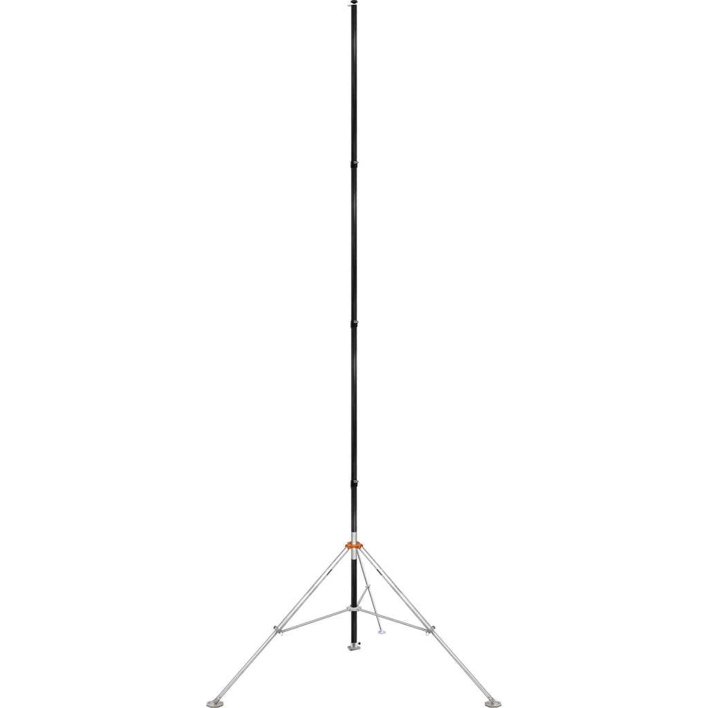 The Air 21PT Carbon Tower from Hi Rise Camera is a tripod system that supports a 20' telescopic pole, allowing a camera to be positioned at a higher perspective than a conventional tripod can achieve. This model does not include electronics or bracket components, making it ideal for users who prefer to use their own. The base of the pole is supported by a carbon fiber tripod leg set that allows it to be properly leveled on uneven terrain, and an easy-spin base allows you to point the camera atop the pole in the desired direction. The set includes three stakes and three sandbags to ensure the pole and tripod legs are secured and won't topple.