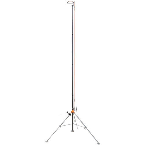 The Sky 250NE Tower from Hi Rise Camera extends to 21' tall, allowing a camera to be positioned at a higher perspective than a conventional tripod can achieve. This model does not include a camera or electronic components, making it ideal for users who prefer to use their own. The base of the pole is supported by a durable aircraft-grade aluminum tripod leg set that allows it to be properly leveled on uneven terrain, and an easy-spin base allows you to point the camera atop the pole in the desired direction. The set includes three stakes and three sandbags to ensure the pole and tripod legs are secured and won't topple.