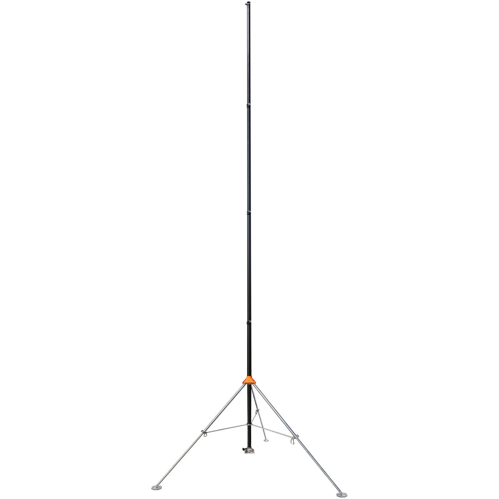 The Sky 250PT Tower from Hi Rise Camera is a tripod system that supports a 20' telescopic pole, allowing a camera to be positioned at a higher perspective than a conventional tripod can achieve. This model does not include electronics or bracket components, making it ideal for users who prefer to use their own. The base of the pole is supported by a durable aircraft-grade aluminum tripod leg set that allows it to be properly leveled on uneven terrain, and an easy-spin base allows you to point the camera atop the pole in the desired direction. The set includes three stakes and three sandbags to ensure the pole and tripod legs are secured and won't topple.