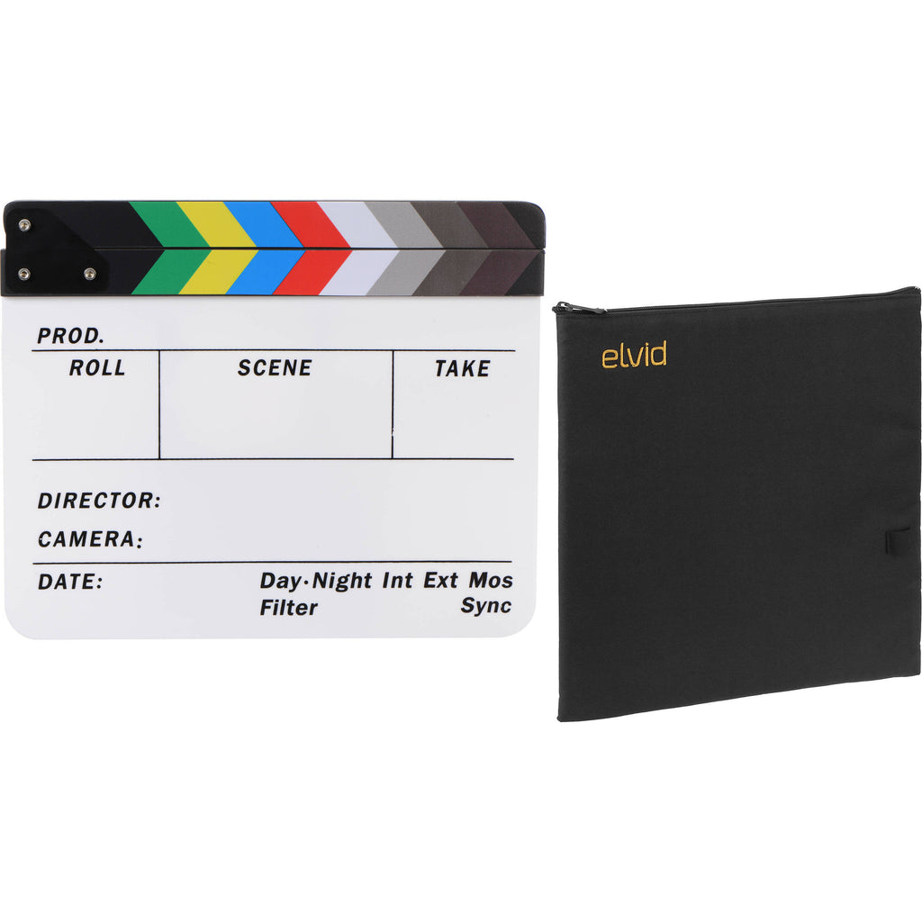 Materials Acrylic board, wood clapper sticks Writing Surface Dry-erase Thickness 3 mm Dimensions 11 x 9" (28 x 23 cm) Packaging Info Box Dimensions (LxWxH) 12.6 x 10.5 x 1.9" - Elvid Soft Case for Production Slates (11 x 11")