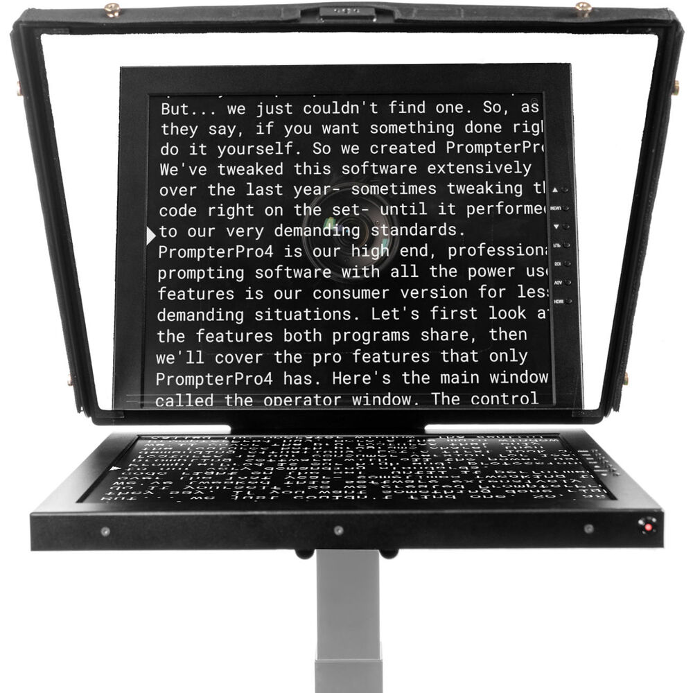 - The 19" teleprompter monitor features 1280 x 1024 resolution, 1000 cd/m² brightness, and a 160/170° viewing angle.