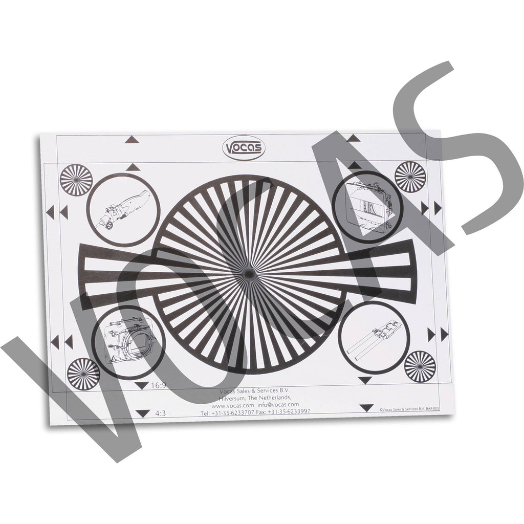 The Backfocus and White Card by Vocas is a handy tool combining a focus chart, white card, and framing guide. It is useful in the field for checking and adjusting back focus on professional video cameras with interchangeable lenses. As a white card it is used to adjust the white balance of video cameras to different color temperature of light in changing locations. The framing guide can be photographed as an aid in post production to establish the aspect ratio for the project.