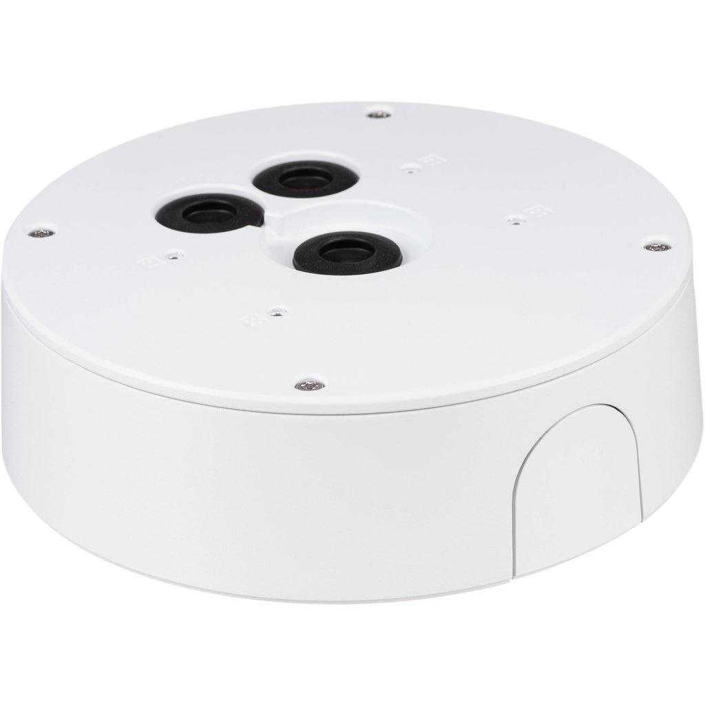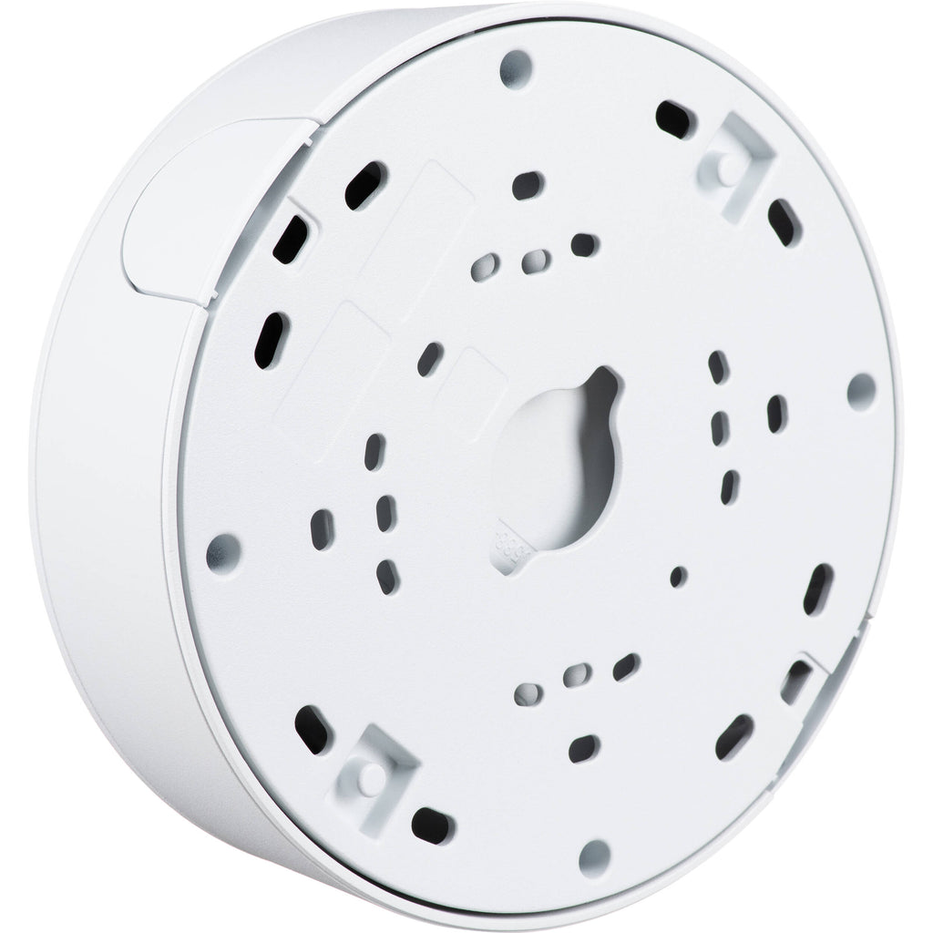 The TQ3601-E is a conduit back box designed for select Axis Communications cameras. It provides additional space needed for installation, cables, or other accessories. It features an M25 conduit interface from the side and back.