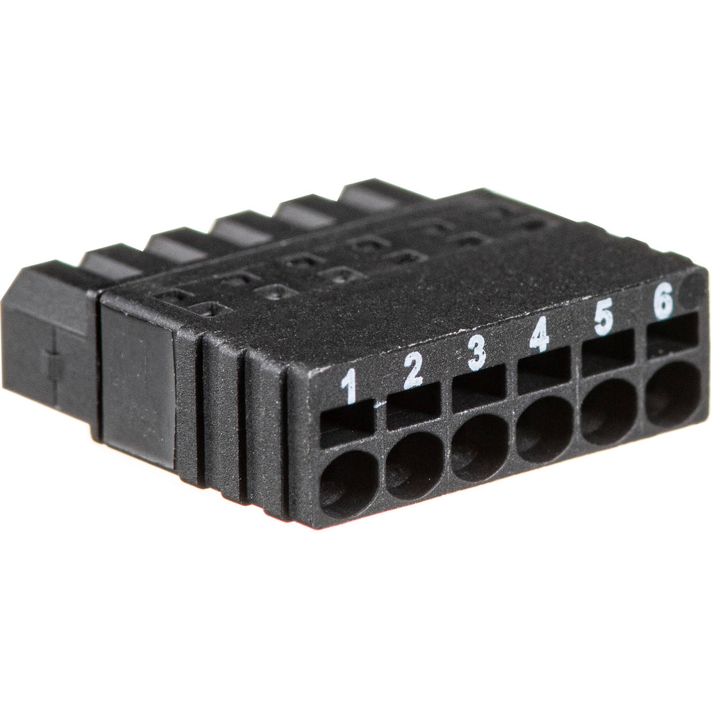 These 6-pin male connectors are compatible with the AXIS F9111, F9114, and F9114-B Main Unit modular cameras.