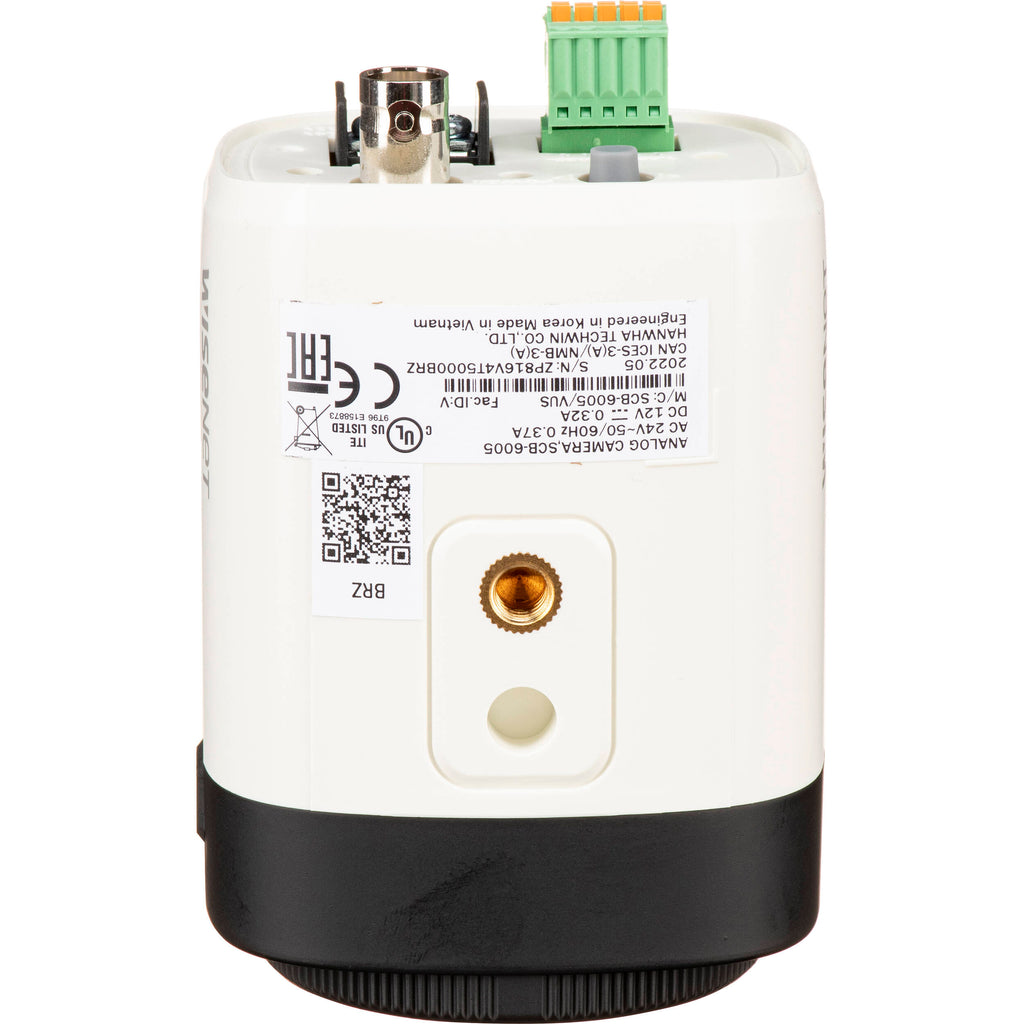 Capture HD video over coaxial cable with the SCB-6005 2MP Analog HD Box Camera (No Lens) from Hanwha Techwin. This camera uses a 1/2.8" CMOS sensor to transmit 1920 x 1080 resolution video at 30 fps. AHD and CVBS signal outputs are supported. The camera has a video transmission range up to 1640'.