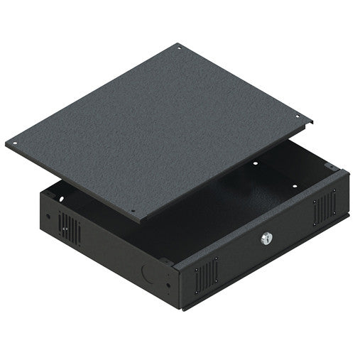 Secure your DVR or NVR from theft and tampering with the black DVR-MB1 Mobile/Rackmount DVR Lockbox from Video Mount Products. This lockbox is designed for mobile and rackmount applications. The lockbox has mounting locations for up to four fans to aid in cooling and ventilation. A single fan is included. Additional fans are available separately. Multiple vents with removable vent blockers are available for active or passive thermal management. The finish on this lockbox is powder coated and static resistant.