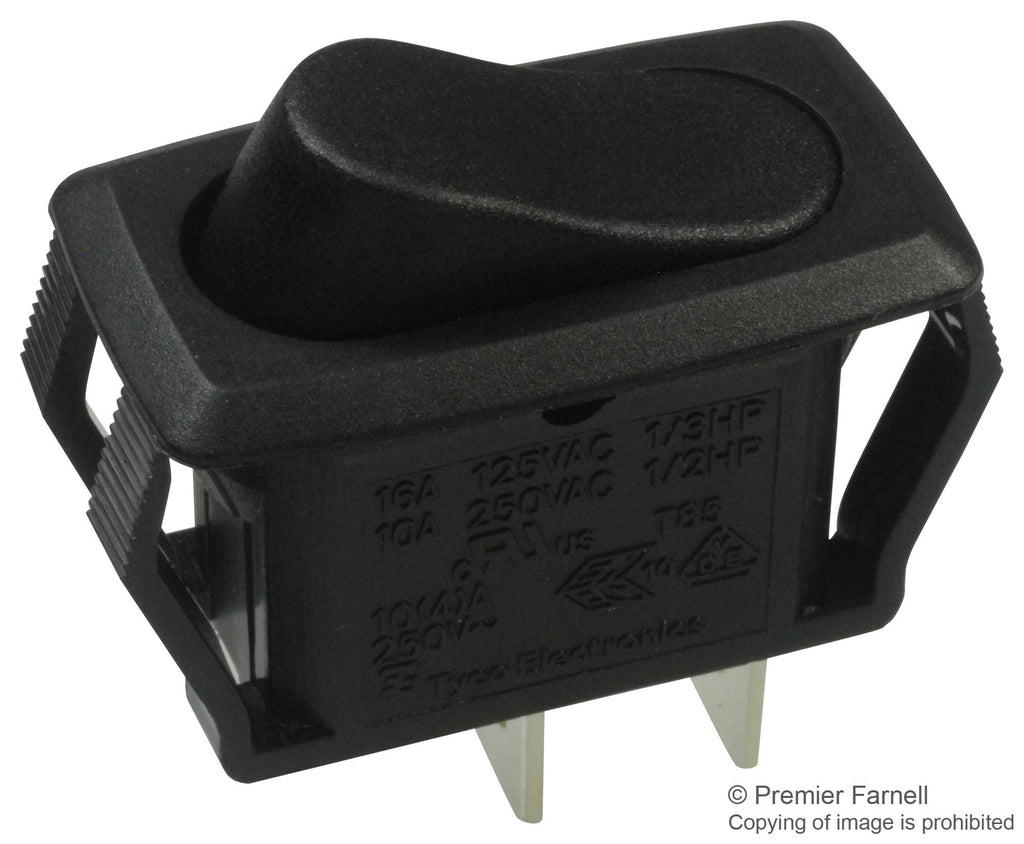 This is a SWITCH, ROCKER, SPST, 16A, 250V, BLACK product from ALCOSWITCH - TE CONNECTIVITY with the model number PRBSA1-16F-BB000
