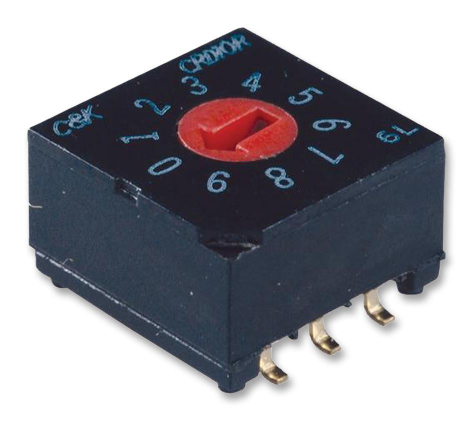 This is a Rotary Coded Switch, CRD Series, Through Hole, 16 Position, 20 V, Hexadecimal product from C & K COMPONENTS with the model number CRD16RM0CB