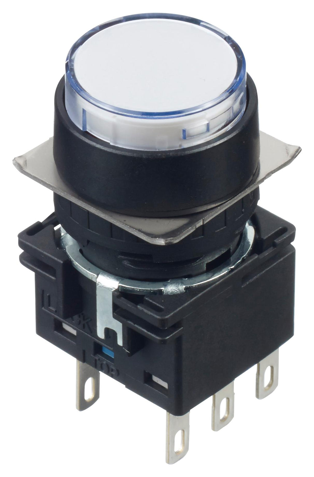 This is a Pushbutton Switch, On-Off, DPDT, 250 V, 30 V, 5 A, Quick Connect, Solder product from IDEC with the model number LB1B-A1T6LW