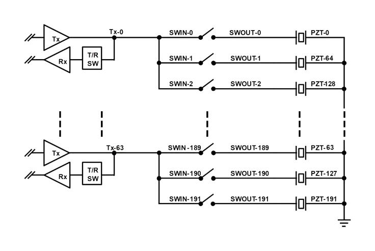 MP4864AGBD is a 64-channel, high-voltage, SPST analogue switch with integrated output bleed resistors designed for medical ultrasound imaging applications. It is designed to multiplex the transmit and receive voltages to and from multiple piezoelectric transducers. The output switches are controlled by a 64-bit serial shift register, followed by a 64-bit data latch. A data out pin allows multiple devices to be cascaded together. This minimizes the number of input/output (I/O) control lines. A logic high signal in the data latch turns on the corresponding analogue switch; a logic low signal turns off the corresponding analogue switch. The MP4864A does not require any high-voltage supplies. It only requires two low-voltage supplies (3.3V and 12V). The analogue switch can block or pass analogue voltages up to ±90V, with peak currents of up to ±2A. The MP4864A is available in a BGA-144 (10mmx10mm) package. It is used in medical ultrasound imaging and Non-Destructive Testing (NDT).