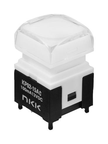 This is a PB SWITCH, ILLUM, SPST, 0.1A, 12VDC, RGB product from NKK SWITCHES with the model number KP0215ACBKG03RGBP