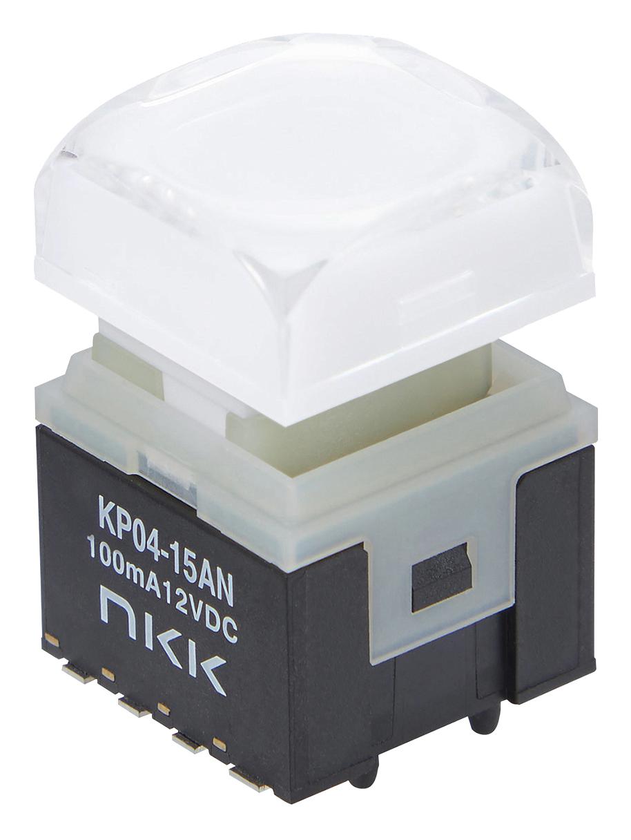 This is a KP0415ANG03RGBP-2SJB PB SW , SPST, 0.1A/12VDC/SMT, RED/GRN/BLU product from NKK SWITCHES with the model number KP0415ANG03RGBP-2SJB