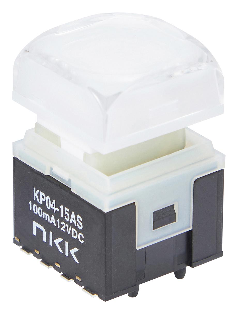 This is a KP0415ASG03RGBP-2SJB PB SW , SPST, 0.1A/12VDC/SMT, RED/GRN/BLU product from NKK SWITCHES with the model number KP0415ASG03RGBP-2SJB