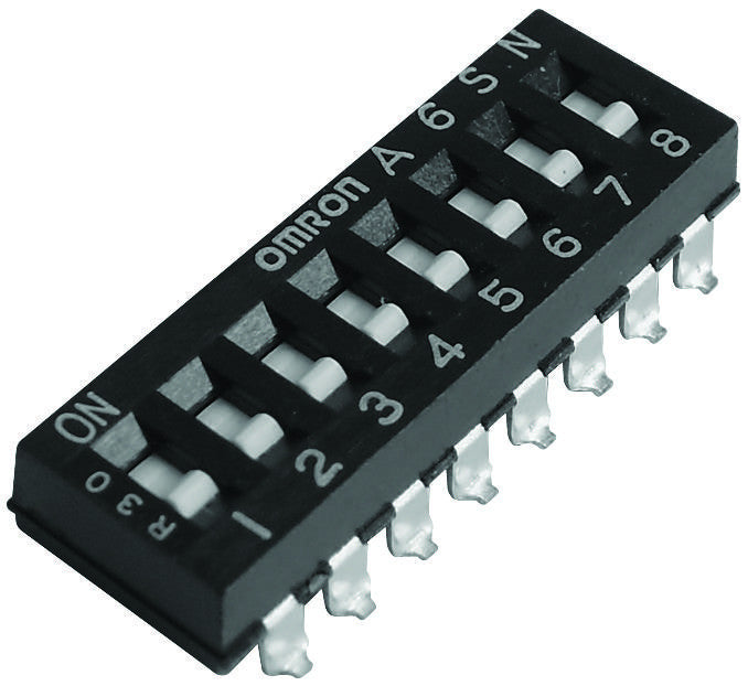 This is a DIP SWITCH, 5, SPST, RAISED SLIDE product from OMRON ELECTRONIC COMPONENTS with the model number A6SN-5104