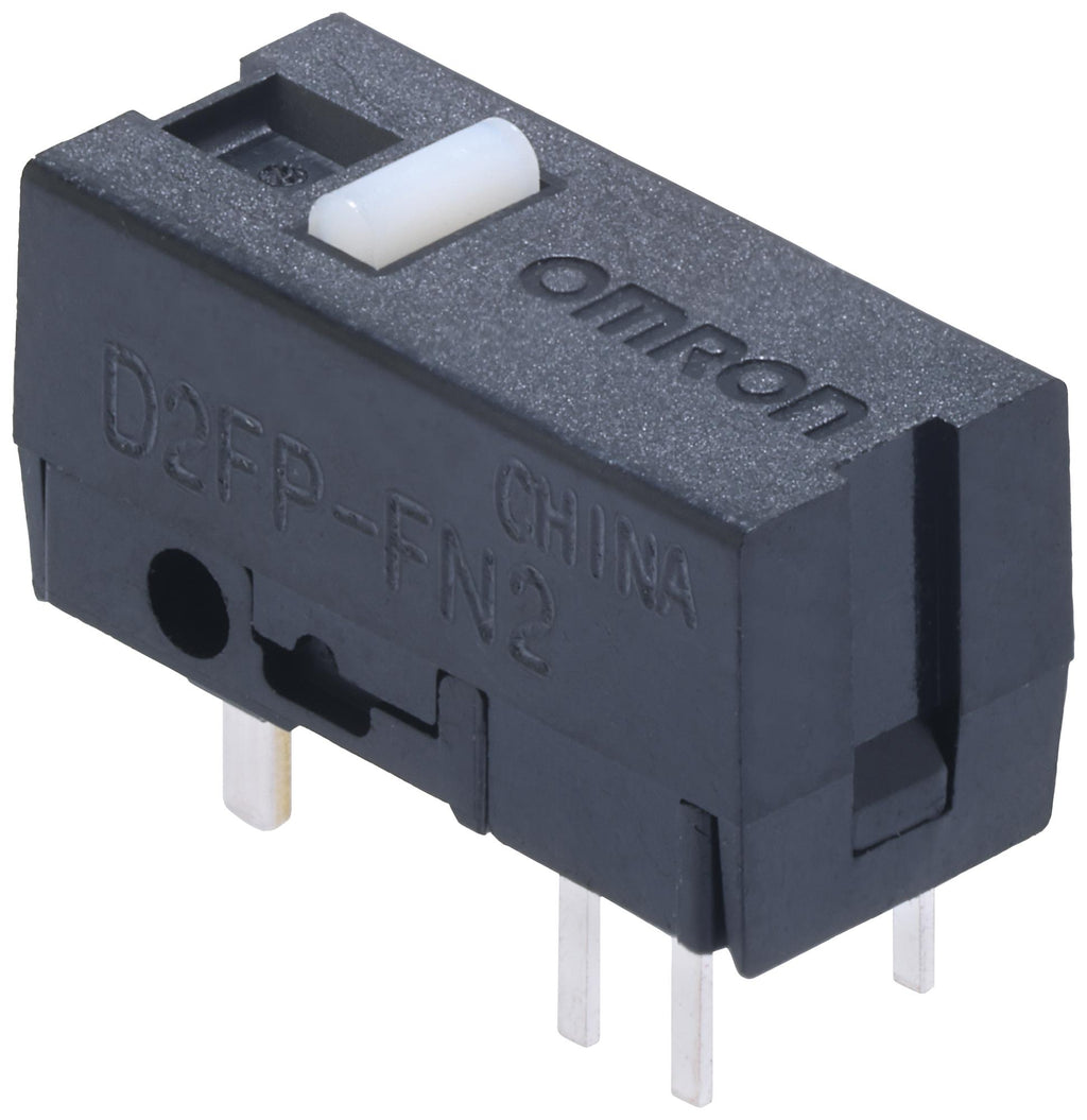 D2FP-FN2(STD) is a D2FP series ultra sub miniature basic switch. This optical ultra sub miniature basic switch is used for operations with rapid response and high reliability. Rapid, chattering-free response due to contactless operation using photosensors. High reliability achieved by improved resistance against environment change. Long durability achieved using a stable spring structure. Easy mounting achieved by integrating the sensors inside the switch. Clear click feeling.