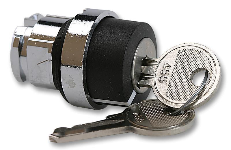 The ZB4BG7 is a 3-position Selector Switch, round signalling unit head, suitable for XB4 series non-illuminated key switches. Black metal bezel, to centre operator and Ronis 455 keylock. Centre key withdrawal position.