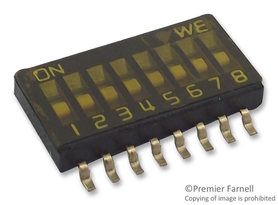 This is a DIP / SIP Switch, 8 Circuits, SPST, SMD, WS-DISV Series, DIP Sealed, 24 V product from WURTH ELEKTRONIK with the model number 416131160808