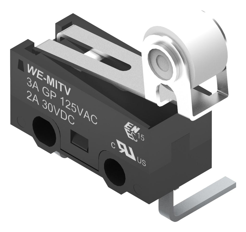 WURTH ELEKTRONIK 463093691402 Microswitch, Standard, Roller Lever, SPDT, PC Pin, Right Angle, 2 A, 30 V
