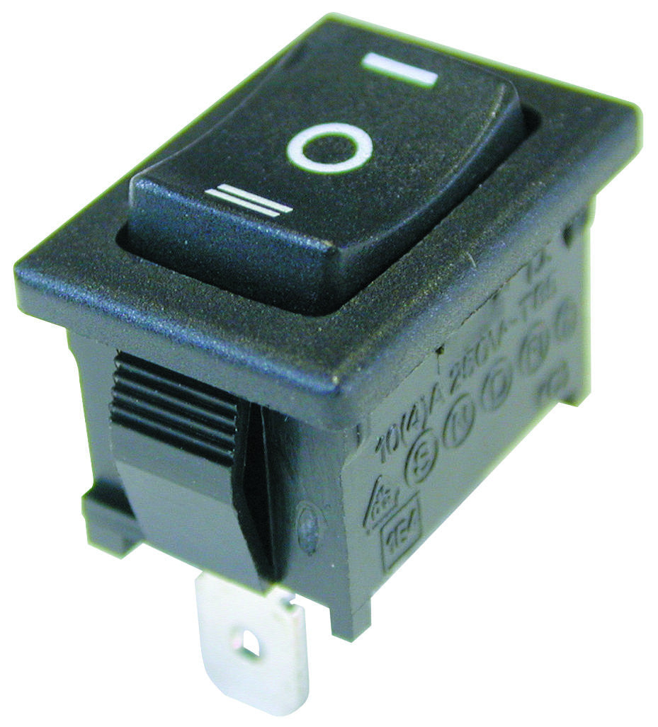 This is a SWITCH, ROCKER, SPST, 10A, 250V, BLACK product from ZF ELECTRONICS with the model number SRB22A2BBBNN