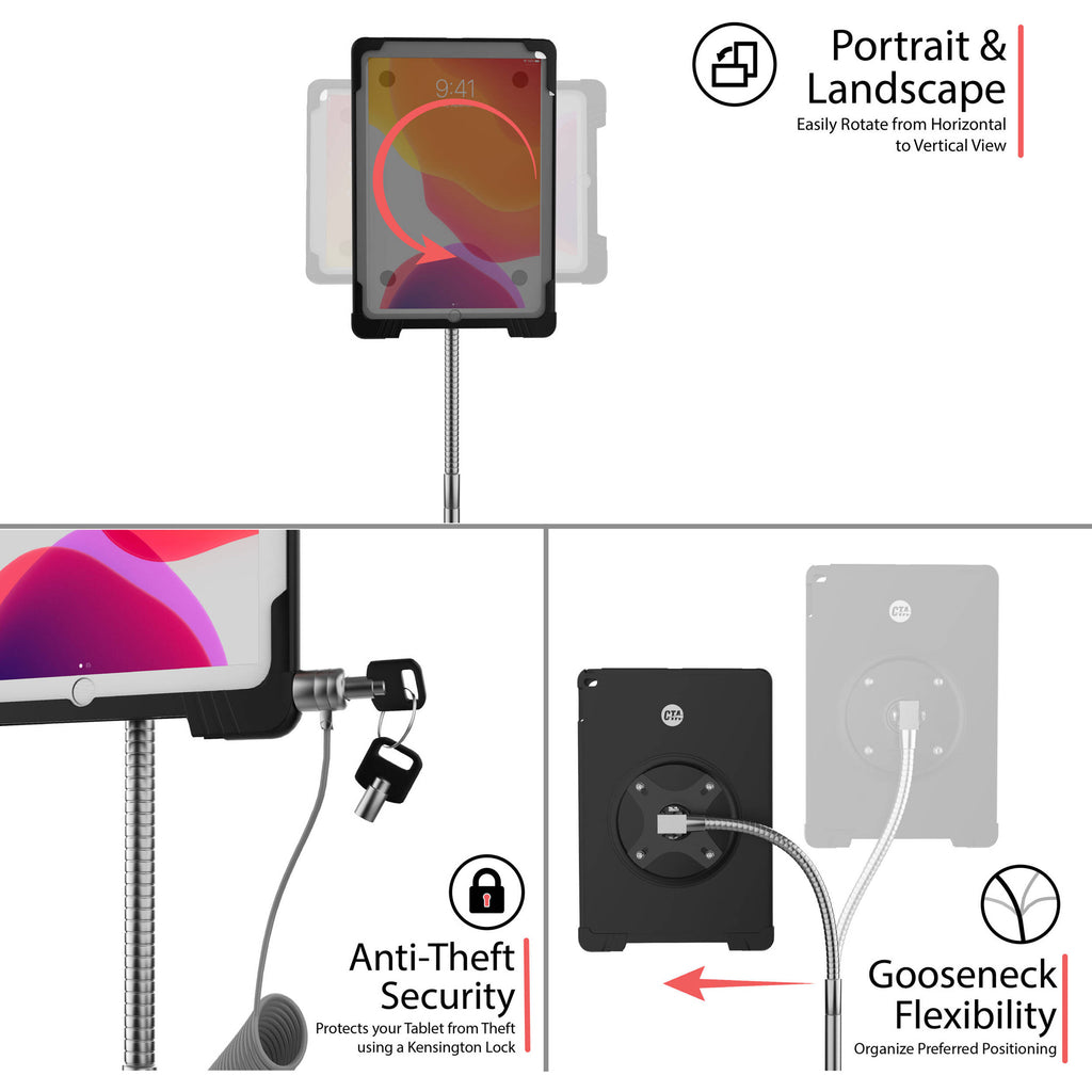 CTA Digital Security Enclosure and Height-Adjustable Gooseneck Floor Stand for Select iPads