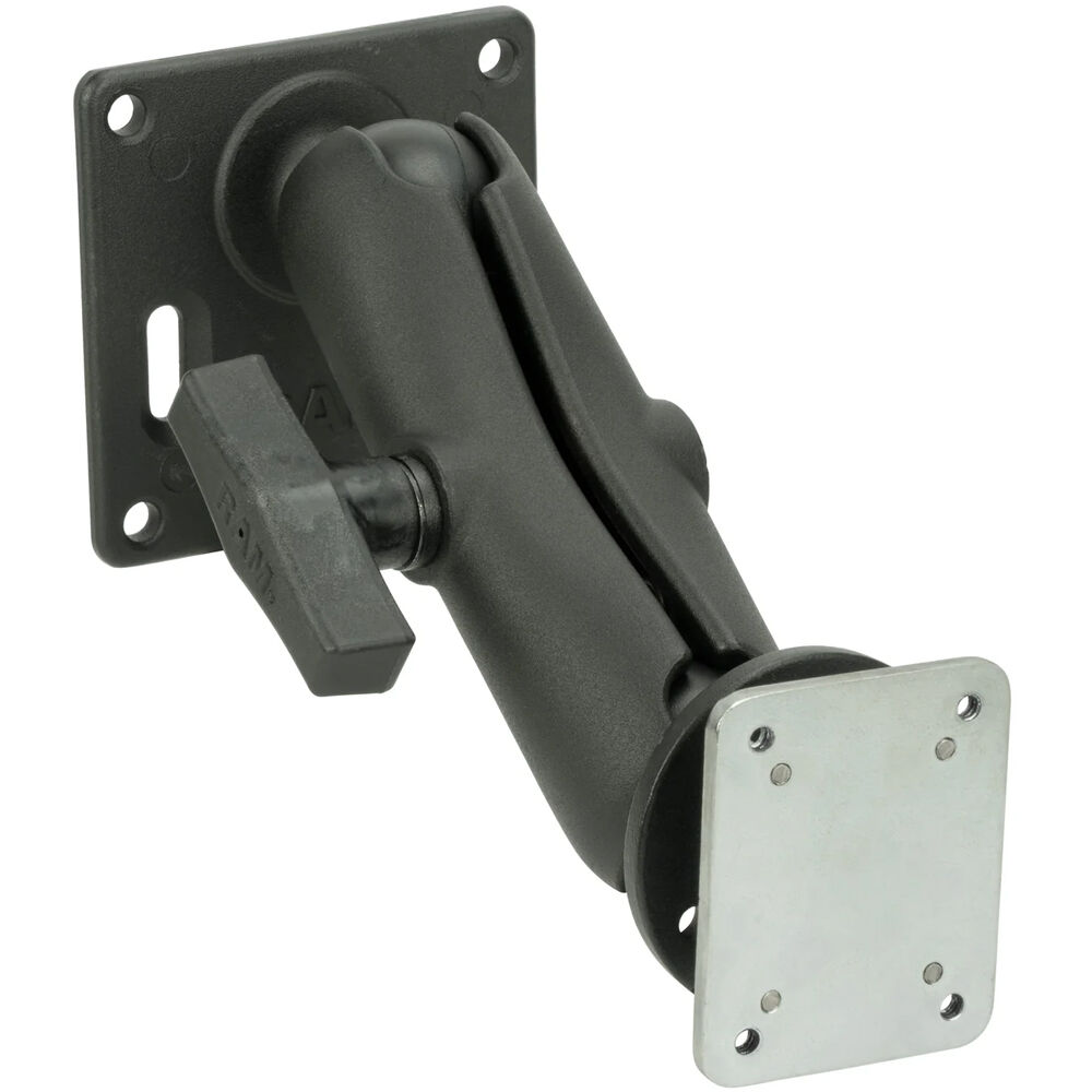 From RAM MOUNTS, this Universal Backing Plate Mount is designed for mounting a device with a compatible VESA hole pattern to a flat surface that can be drilled into. The adjustable mount consists of a double socket arm with a 2.5" diameter round base on the bottom and 75 x 75 VESA plate on top. It also features a backer plate. The overall height of the mount is 7.4".