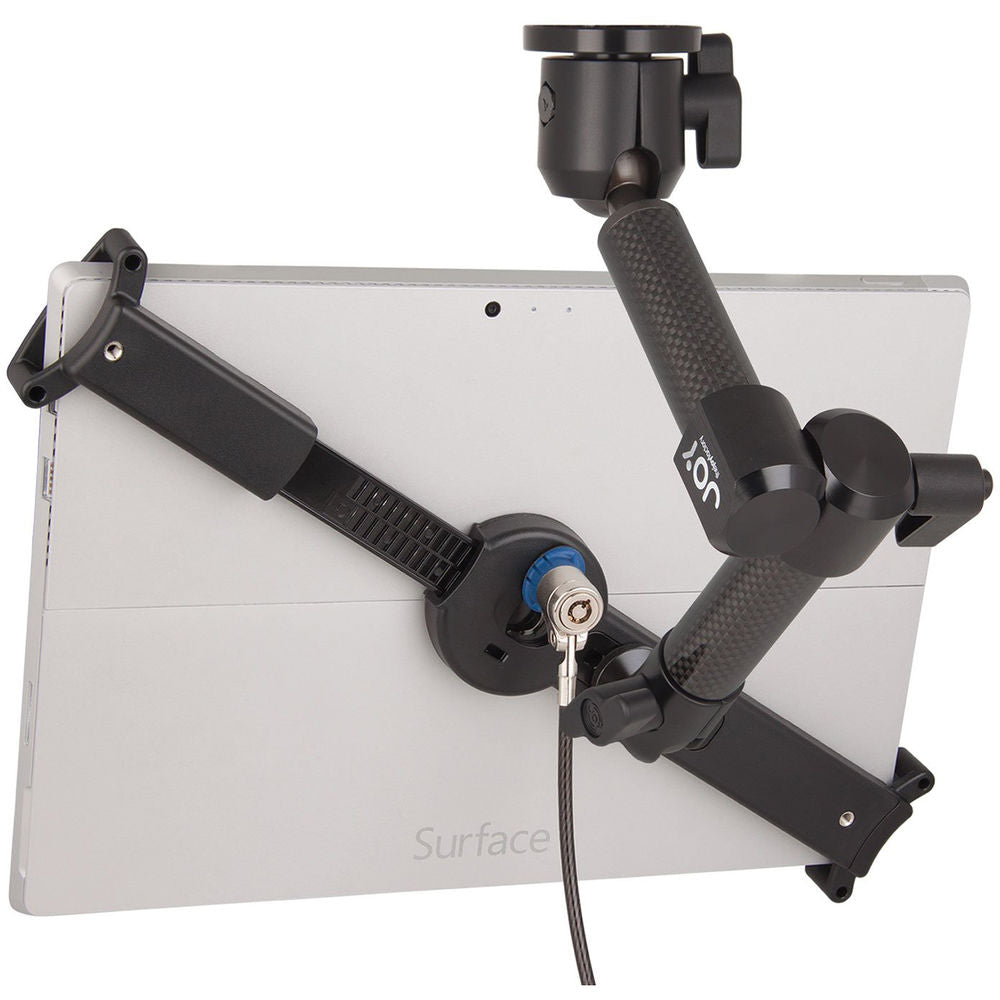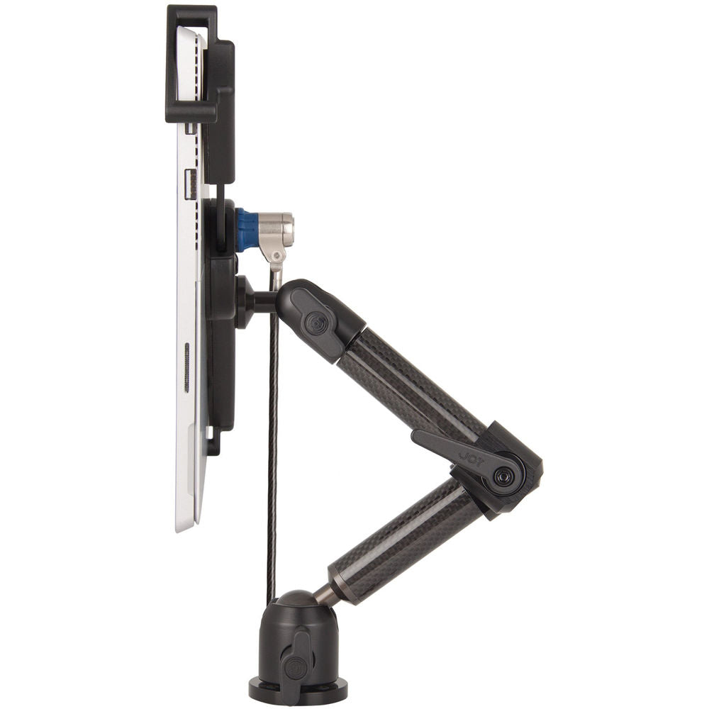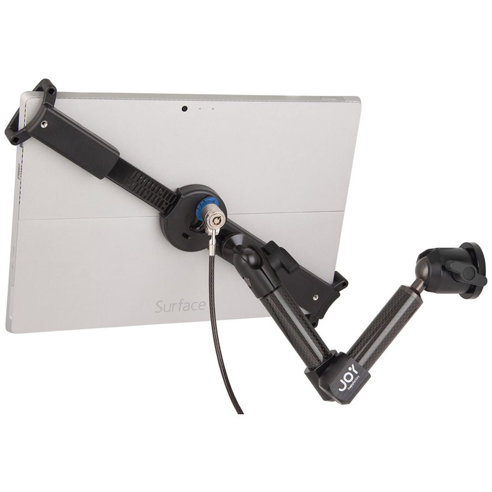 The LockDown Universal Wall/Cabinet Carbon Fiber Mount with Key Lock for 10-13" Tablets from The Joy Factory allows you to utilize a tablet in a public space for applications like an exhibition, trade show, in a retail setting and more - while offering an added measure of security. It's designed for a permanent installation. The mount features two articulating carbon fiber arms, and it allows for a generous amount of adjustment. Additionally, it folds away when you're not using it.